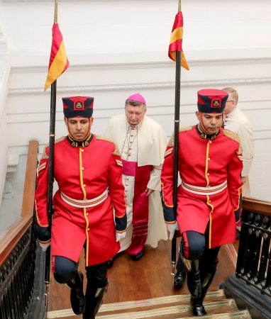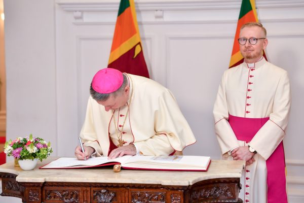 இலங்கைக்கான புனித பீடத்தின் திருத்தூதுவர் தனது தகுதிச்சான்றுகளை சமர்ப்பிக்கிறார்