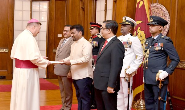 ශ්රී ලංකාවේ ශුද්ධාසනයේ අපෝස්තලික තානාපතිවරයා සිය අක්තපත්ර පිළිගන්වයි