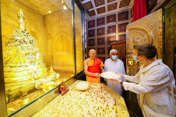Moving to Kandy, the royal guests were welcomed by the Central Province Governor Lalith U Gamage, and were escorted to the sacred temple of the ‘Tooth Relic’, where she paid her respects.
