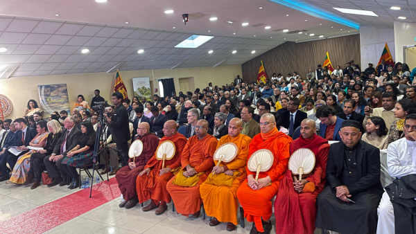Following the ceremonial proceedings, Dana was offered to the Maha Sangha and religious dignitaries. The celebrations concluded with a reception featuring traditional kiribath, Sri Lankan sweetmeats, and Ceylon Tea.  Over 350 invitees participated in the event, marking a memorable day of unity, harmony and national pride.