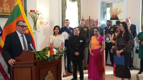 The ceremony opened with the hoisting of the National Flag by Ambassador Mahinda Samarasinghe, Sri Lanka’s Ambassador to the United States, while the national anthem of Sri Lanka was rendered in Sinhala. In keeping with Sri Lanka’s long-standing tradition of religious harmony, multi-faith religious observances were conducted by religious leaders representing Buddhist, Hindu, Islamic, and Christian faiths. The proceedings included the ceremonial lighting of the traditional oil lamp and collective remembrance in honor of national heroes who fought for Sri Lanka’s freedom and independence, as well as all those who lost their lives, remain missing, as a result of Cyclone ‘Ditwah.’