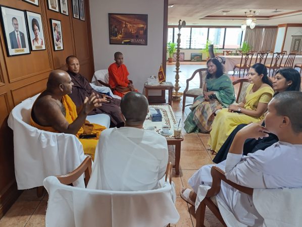Ven. Awissawelle Waga Sri Wajirawansa Thissa Thero and Ven. Warakapola Chintha Nanda Samaneri, together with the Officers from the Office of the Chief Sangha Leader in Ubon Ratchathani District, called on Ambassador of Sri Lanka to the Kingdom of Thailand and Permanent Representative to UNESCAP, Wijayanthi Edirisinghe at the Embassy of Sri Lanka in Bangkok.