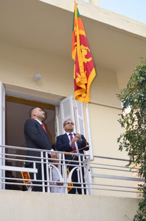 The National Flag was hoisted by the Ambassador of Sri Lanka to the Arab Republic of Egypt, followed by the singing of the National Anthem by Sri Lankan students in Cairo. Two minutes of silence were then observed in solemn remembrance of the patriots who made the supreme sacrifice in securing the nation’s freedom.