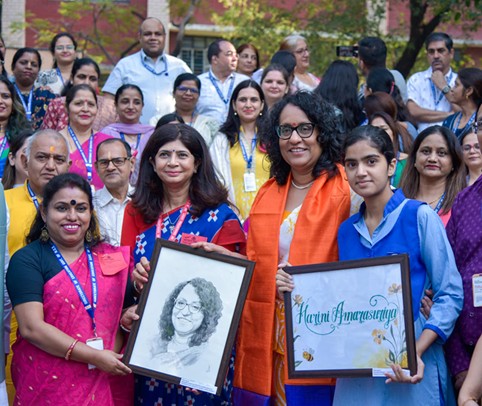 A distinguished alumna of Hindu College, Delhi University, The Prime Minister of Sri Lanka, Honourable Dr. Harini Amarasuriya revisited her alma mater on 16 October. She received a warm welcome from students, faculty, alumni, and the governing body, and was accorded a ceremonial Guard of Honour by the National Cadet Corps contingent, which was followed by a ceremonial tree-planting on the College lawn.