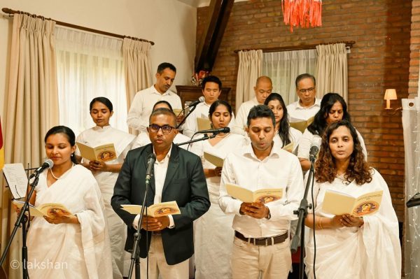 The staff of the Embassy sang Buddhist devotional songs (Bakthi Gee) for the 5th consecutive year.  The Sri Lankan Community too sang the “Bakthi Gee” making the event colourful.   The Embassy and the Official Residence premises were decorated with Buddhist flags, Vesak lanterns and illuminated with colourful lights.