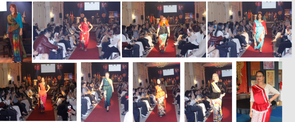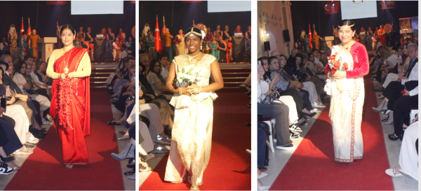 The collection of the sarees draped in Kandyan style and jewellery worn by the models were curated by Ambassador Hasanthi Urugodawatte Dissanayake, whose creative direction contributed greatly to the visual richness and cultural authenticity of the presentation.