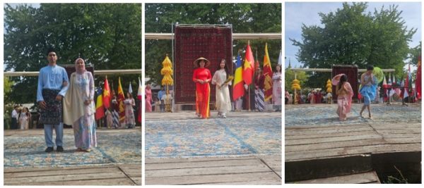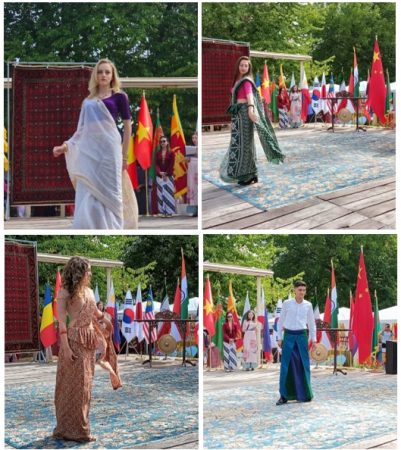 A highlight of the festival was the Fashion Show, where Sri Lanka presented its traditional attire — a striking fusion of grace, heritage, and textile artistry. Flowing handloom sarees, the distinctive osariya, the Redda Hatte (a traditional wrap-around cheeththa cloth paired with a fitted blouse), and men’s sarongs in vibrant hues captivated the audience, reflecting the island’s deep-rooted commitment to preserving its rich handloom legacy. Romanian models, elegantly adorned in these ensembles, carried them with poise and dignity, drawing warm applause from the diverse and appreciative crowd.