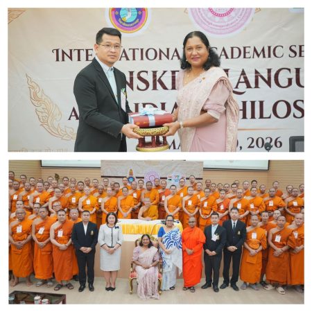 The Ambassador and Permanent Representative of Sri Lanka to UNESCAP in Bangkok, Wijayanthi Edirisinghe, was invited to deliver a lecture on “Guardians of the Dhamma: The Role of Buddhism in Sri Lanka and Anagarika Dharmapala’s Pioneering Efforts to Preserve Buddhagaya” at the Mahachulalongkornrajavidyalaya University, one of Thailand’s foremost centres of Buddhist higher education on 17 March 2026.