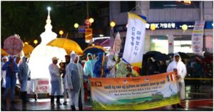 The Sri Lanka parade this year was organised by the Maha Bodhi Maha Viharaya in Korea under the patronage of the Most Venerable Welahinne Vachissara Thero, with the support of the Sri Lanka Embassy, the Mahamewnawa Meditation Monastery, the Korea-Sri Lanka Maha Viharaya and the Sri Lankan community in Korea, which included Sri Lankan employees and members of the Sri Lanka Students’ Association.