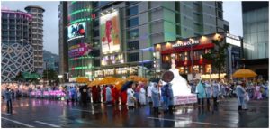 The Sri Lankan parade included a large lantern replicating the Ruwan Weli Seya, as well as Vesak lanterns prepared according to the Sri Lankan Buddhist tradition, and Buddhist flags.  Around 100 Sri Lankans participated in the parade despite rain, making it the largest Sri Lankan parade at the Lotus Lantern Festival in recent times.