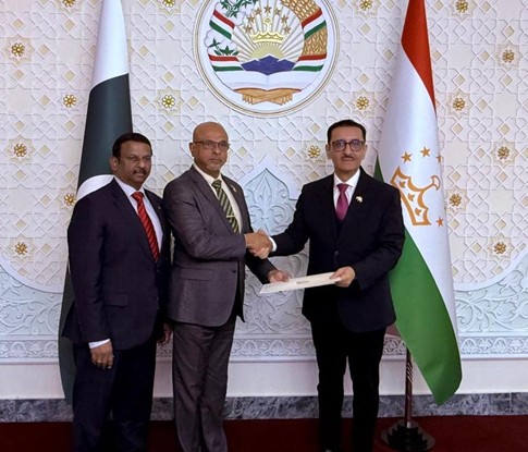 Ambassador-designate of Sri Lanka to the Republic of Tajikistan, Fred Senevirathne, presented the Open Copy of his Letter of Credence to Ambassador of the Republic of Tajikistan to Pakistan, Yusuf, at the High Commission in Islamabad on 08 December 2025.