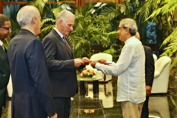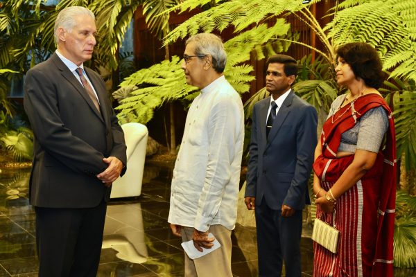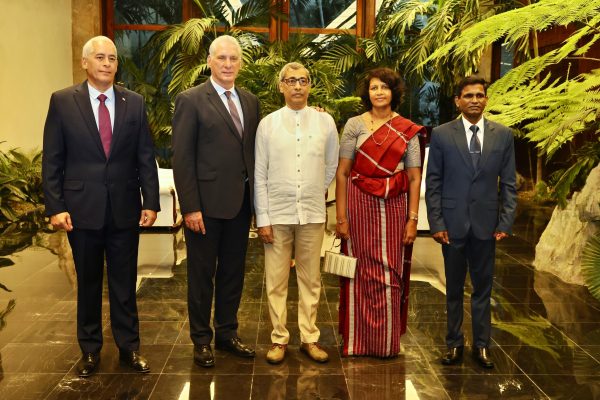 As a State Ceremonial presentation held at the Palacio de la Revolución, Ambassador Mahinda Ratnayake was received by the Chief of Protocol and accorded with a guard of honour and a ceremonial welcome by the Presidential Guard. Following the event, the Ambassador presented the credential papers to the Cuban President at the Palacio de la Revolución.