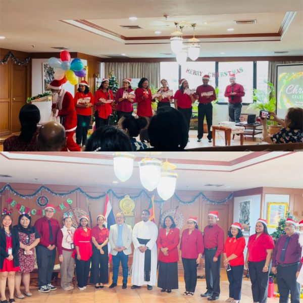 The Embassy and Permanent Mission of Sri Lanka in Bangkok hosted a Christmas celebration on 23 December 2025 at the Embassy premises, bringing together members of the Sri Lankan and Thai communities, religious representatives, and Embassy staff.