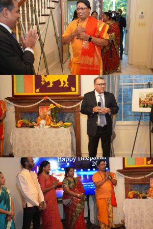 On 17 October 2025, the Embassy of Sri Lanka hosted a Deepavali celebration, honouring the traditional ‘festival of lights’ with the esteemed presence of Kurukkal Shankaran Sivacharyar, a priest from the Sri Siva Vishnu Temple in Maryland.
