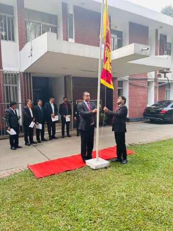 The programme began with the hoisting of the National Flag by the High Commissioner of Sri Lanka to Bangladesh, Dharmapala Weerakkody, followed by the singing of the National Anthem. A two-minute silence was thereafter observed in solemn remembrance of the members of the Tri-Forces and all others who made the supreme sacrifice in service of the motherland.
