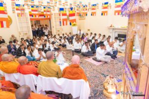 The religious ceremonies were conducted under the guidance of the Chief Sanghanayake of Great Britain, Ven. Bogoda Seelawimala Nayaka Thero. Thirty-three (33) venerable members of the Maha Sangha representing the Sri Lankan Buddhist temples around the country participated in the religious ceremony. Speaking on the occasion, Ven. Bogoda Seelawimala Nayaka Thero observed that this was the first occasion that a large congregation of Sri Lankan Buddhist Monks of this nature had taken place.