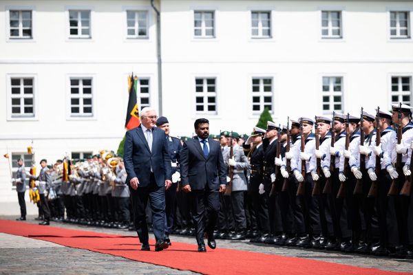 ஜனாதிபதி பிராங்க்-வோல்டர் ஸ்டெய்ன்மியர் விடுத்த அழைப்பின் பேரில், விஜயத்தை மேற்கொண்ட ஜனாதிபதி திஸாநாயக்க, 2025, ஜூன் 11 அன்று பெர்லினில் உள்ள பெலிவியூ அரண்மனையில் ஜெர்மனிய ஆயுதப் படைகளால் வழங்கப்பட்ட சம்பிரதாயபூர்வ மரியாதையுடன் ஜெர்மனிய ஜனாதிபதியால் வரவேற்கப்பட்டார்.