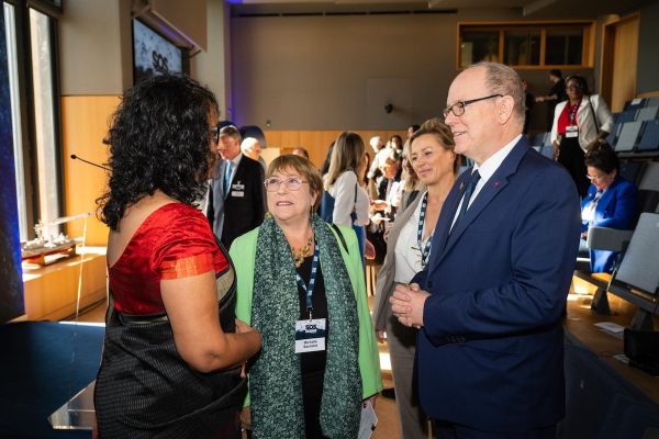 During the Conference, the Prime Minister also had occasion to meet and exchange greetings with the President of the French Republic Emmanuel Macron who conveyed his warm greetings to President Anura Kumara Dissanayake. President Macron delivered the concluding remarks at the Conference. The Prime Minister also interacted and exchanged greetings with H.S.H. Prince Albert II of Monaco, the former President of Chile and the former UN High Commissioner for Human Rights Michelle Bachelet, and the President of the European Council António Costa who also addressed the high-level segments of the Conference.