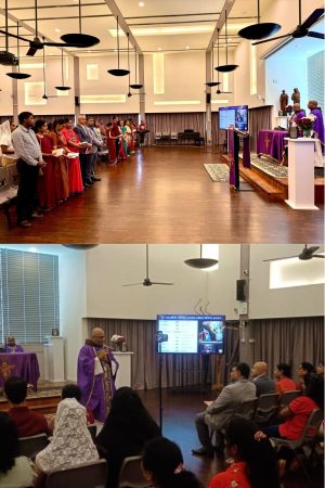The Service was conducted by the Assistant Parish Priest, Rev. Fr. Julian Mariaratnam, who led special prayers for the safety, well-being, and recovery of affected communities, and invoked blessings upon the people and leadership of Sri Lanka. He emphasised empathy, mutual understanding, and peaceful coexistence, particularly during times of adversity, and called for collective support for those in need.