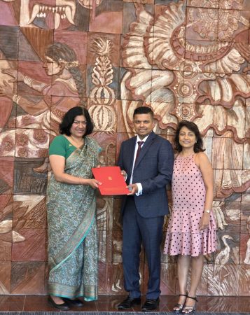 High Commissioner Yasoja Gunasekera handed over the Commission of Appointment to the new Honorary Consul for Sri Lanka in Brisbane, Nalin Perera, with consular jurisdiction covering Queensland, on 19 February 2026 at the Sri Lanka High Commission in Canberra.