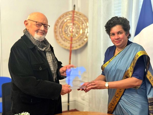 Speaking on the occasion, the Ambassador of Sri Lanka to France, Manisha Gunasekera, highlighted Prof. Meyer’s long and distinguished career, his close academic collaboration and links with Sri Lanka, and his invaluable contribution to enhancing academic and cultural ties between Sri Lanka and France over the years. The Ambassador also recalled Prof. Meyer’s proactive role in establishing the “Friends of Sri Lanka” Group and the “Franco–Sri Lanka Study Circle” in France, under the patronage of the Sri Lanka Embassy, more than three decades ago.