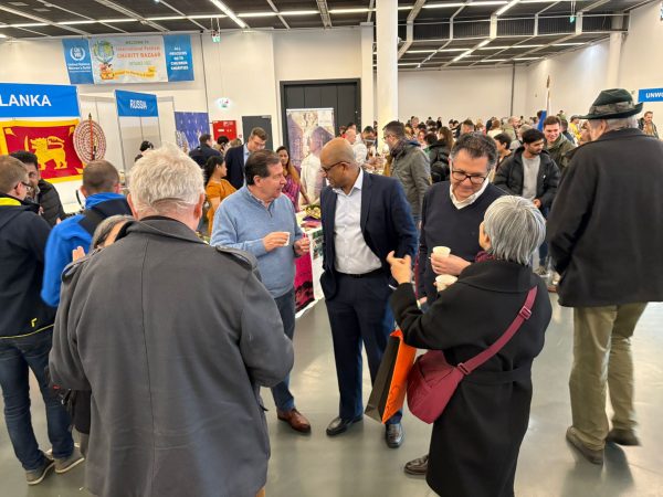 The Sri Lanka stall, organized by the Embassy, was decorated with traditional batiks, Sri Lankan art, and photographs, offering visitors a cultural showcase. Tourism brochures were made available, and guests were served traditional Sri Lankan snacks and sweetmeats together with Ceylon Tea, highlighting Sri Lanka’s culinary heritage.