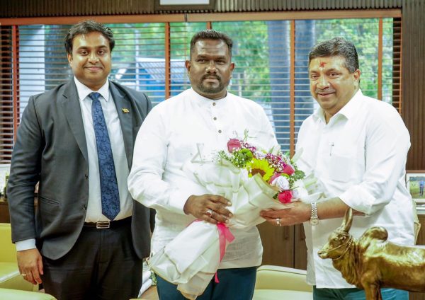 The Deputy High Commissioner of Sri Lanka for Southern India, Dr. Ganesanathan Geathiswaran, facilitated a courtesy call between Minister for Information Technology and Digital Services of Tamil Nadu, Palanivel Thiaga Rajan, and the Deputy Minister for Plantation and Community Infrastructure of Sri Lanka, Sundaralingam Pradeep in Chennai on 19 December 2025.