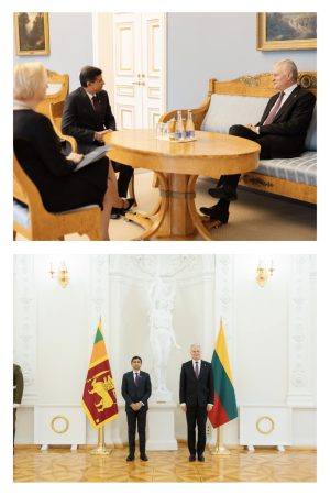 Sri Lanka’s Ambassador Kapila Fonseka presented his Credentials to the President of the Republic of Lithuania, Gitanas Nausėda, at a ceremony held at the Presidential Palace in Vilnius on 15 October 2025. Ambassador Fonseka will serve as Sri Lanka’s Ambassador to Lithuania with residence in Stockholm. During the presentation of Credentials, he conveyed warm greetings and best wishes from the President of Sri Lanka, Anura Kumara Dissanayake, and reaffirmed Sri Lanka’s commitment to further strengthening the longstanding friendship and cooperation between the two countries. The Lithuanian President reciprocated with his greetings to President of Sri Lanka and expressed confidence in the continued strengthening of bilateral relations between Sri Lanka and Lithuania.